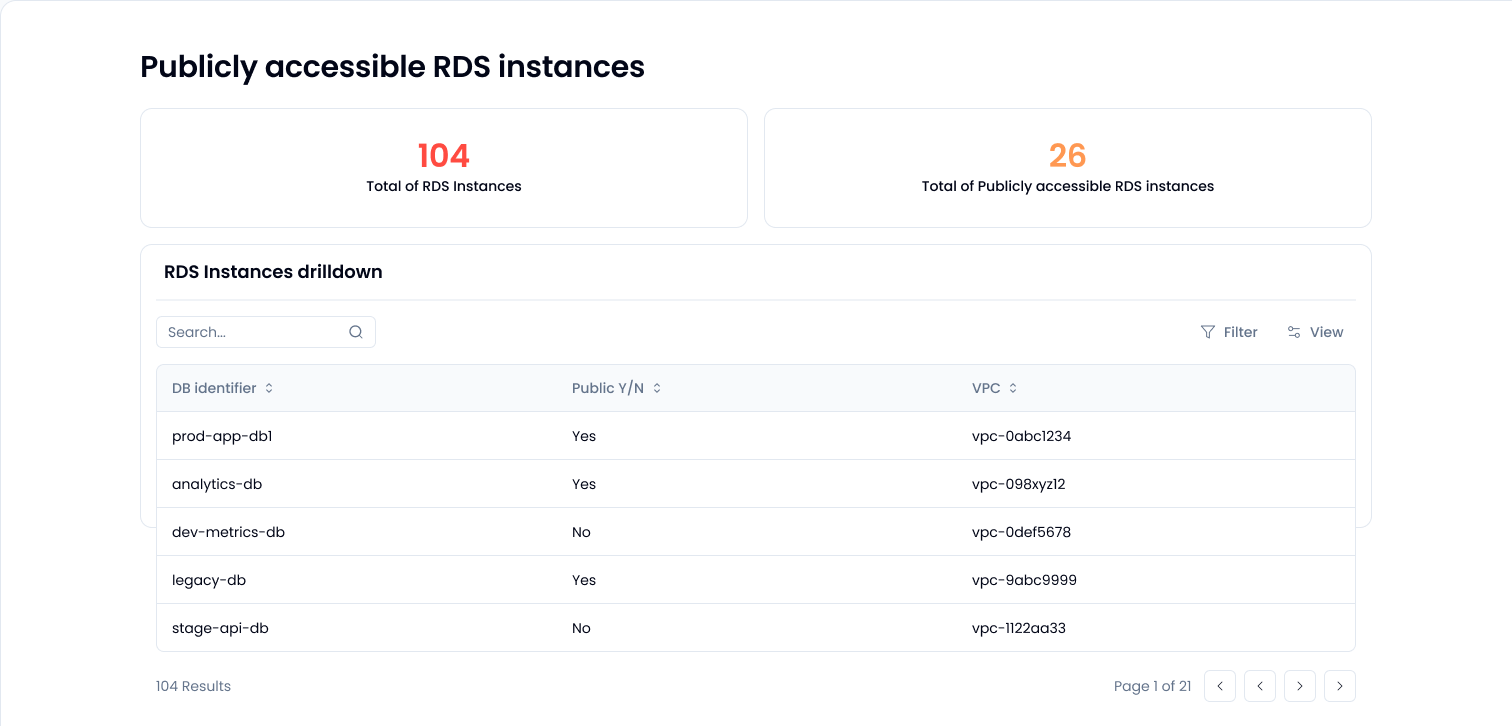 PubliclyAccessible flag is set to true and the instance lives in a subnet with internet access. That’s the magic combo. If either one is false, it’s not exposed.You can find this out the hard way, by clicking through the AWS console. Alternatively, you can just ask the question in a Sola app and get the answer instantly. Whether you use our prebuilt AWS compliance app or roll your own with the AI copilot, it takes minutes.